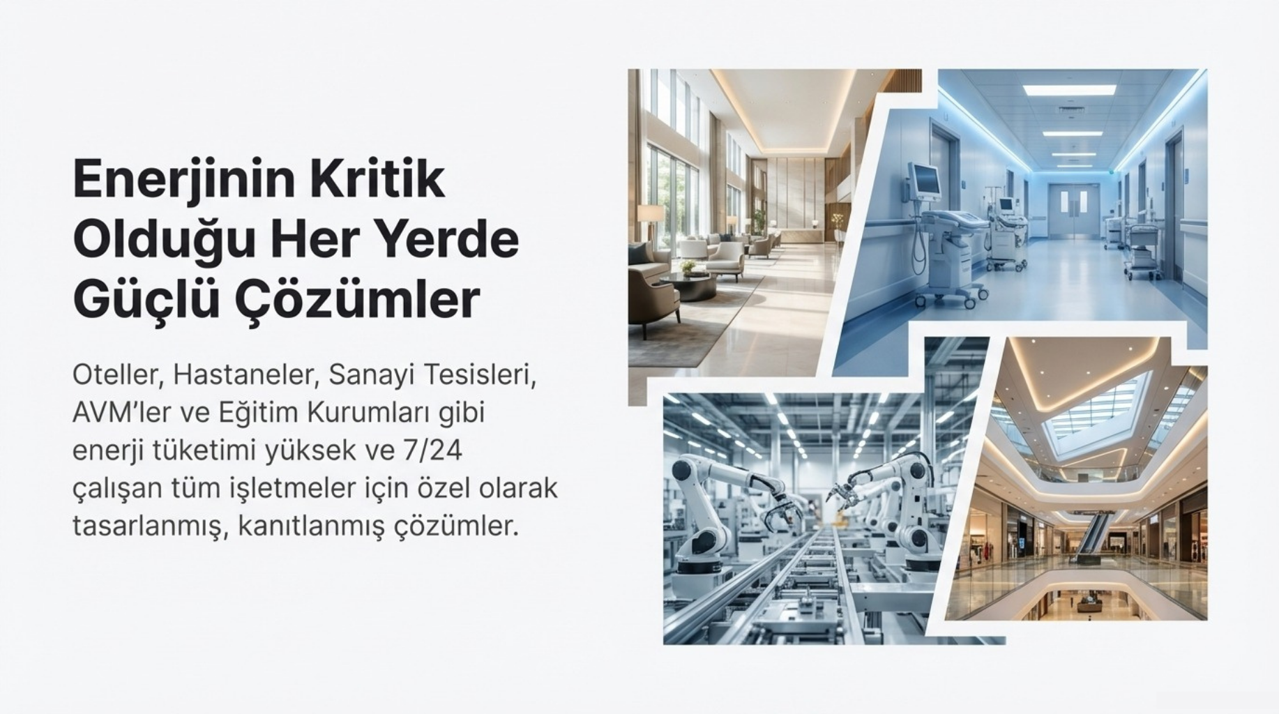 DEOSDATA, enerji tüketimi yüksek ve 7/24 çalışan tüm işletmeler için uygundur. Özellikle;
